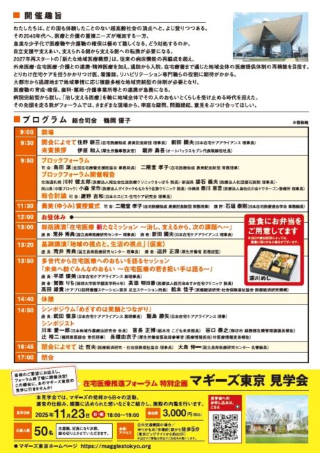 在宅医療の未来に関心があり、リハビリ職として貢献したいとお考えの方にとって、本フォーラムは絶好の機会となるでしょう。