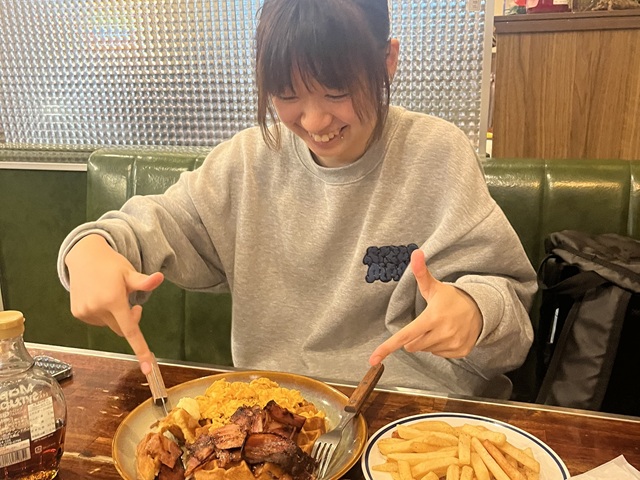 ・「試験こわ~い」と言いつつ、美味しそうにご飯を食べる学生…試験前だけど食欲は別腹です!